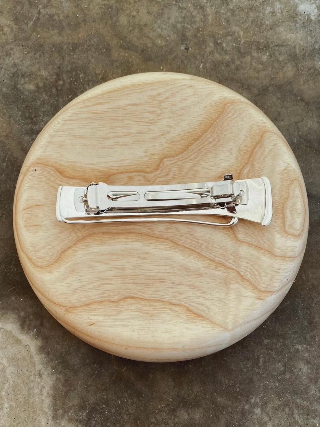 シルバーですが優しい感じになる様、デザインたバレッタ